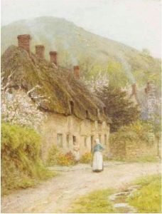 Thatched Cottage With Figures