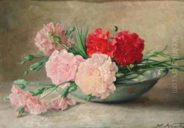 Carnations In A Bowl; And Pansies In A Bowl