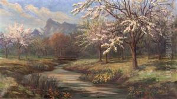 "salzburg -fruhlingslandschaft Mit Bach Und Untersberg"