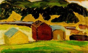 Landskap Med Roda Stugor