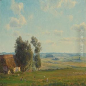 Landschaft Mit Einer Schafherde Vor Einem Bauernhaus. Signiert Unten Rechts: H. Liesegang. Ol Auf Leinwand. H 40; B 50 Cm.