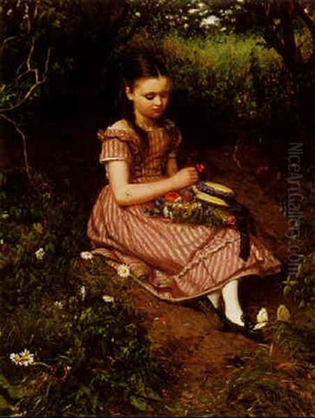 Pensive Girl With Flowers In Her Lap