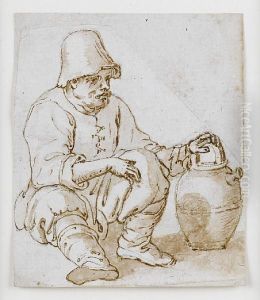 A Seated Man Holding A Jug