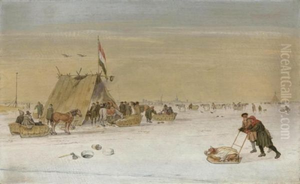 A Winter Landscape With Figures On The Ice