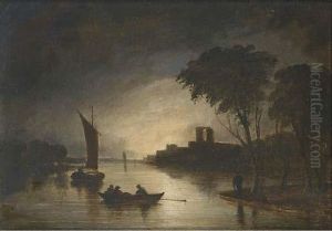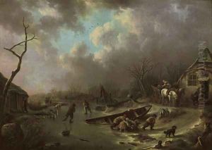 A Winter Landscape With Figures Skating On A Frozen River
