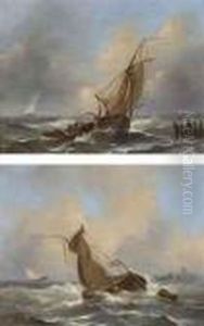 A Dutch Two-Master In A Stiff Breeze Before A Dutch Coastal Town, Possibly Den Briel