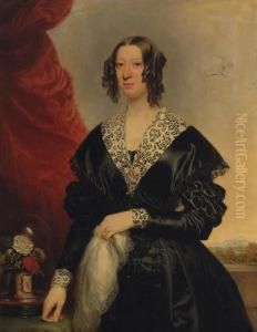 Portrait Of A Girl, Half-length, In A Black Dress With White Cuffs, Collar And Headdress