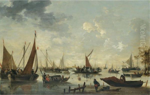 Boats And Ships On The River Maas, The Grote Kerk And Dordrecht In The Distance