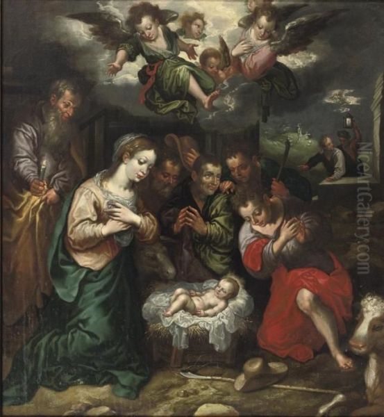 The Adoration Of The Shepherds With The Annunciation To The Shepherds Beyond