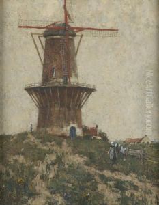 Dutch Scenes With Figuresby A Windmill And Figures By A Boat