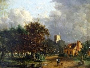 A Classical Landscape With A Herdsman And His Family Resting By A Fountain With Their Cattle And Goats