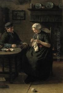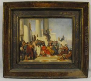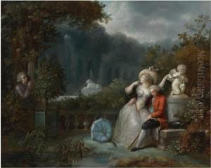 Scene Galante Avec Un Joueur De Luth Et Une Jeune Femme Tenant Unroemer