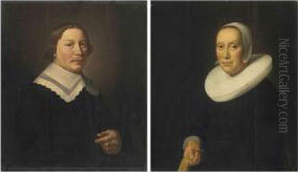 Portrait Of A Gentleman, Half-length, In Black With A White Collar;and Portrait Of A Lady, Half-length, In Black With A White Collarand Bonnet