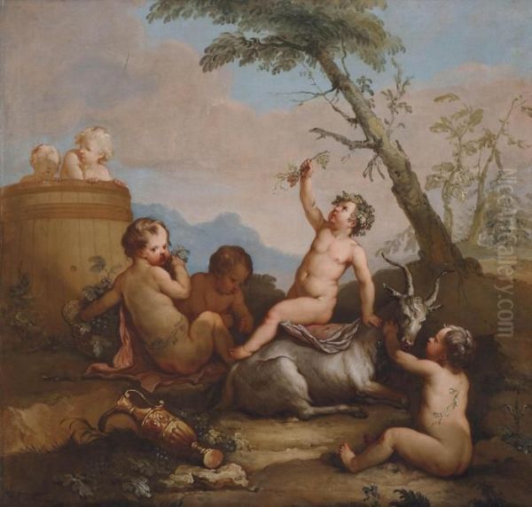 The Infant Bacchus And Putti, With A Goat In A Landscape
