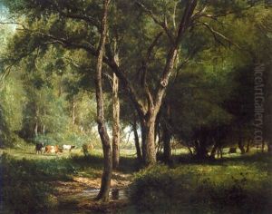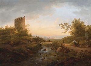 A Panoramic Landscape With A Peasant Woman And Cattle Near A Watermill