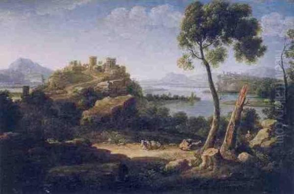 Veduta Fantasiosa Con Un Promontorio Su Di Un Corso D'acqua