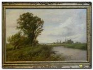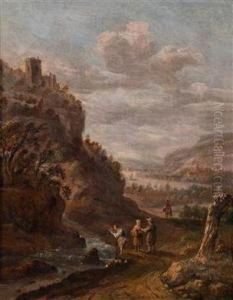 A River Landscape With A Castle, Figures Conversing At Thewaterside