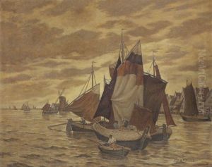 A Waterscape With Sailboats And Cattle