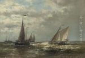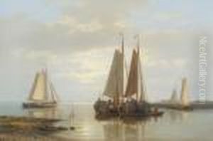 A Moonlit Coastal Landscape With Fishermen In The Foreground