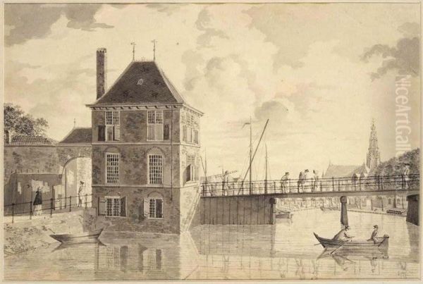 View Of The Eendjespoort, Haarlem, With The Church Of St. Bavo In The Distance