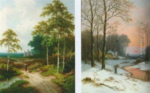 Villagers On A Country Track (+ River Landscape With Cattle Grazing; Pair)