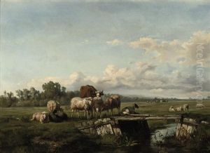 Cattle In The Meadow Oil Painting by Hendrik Savry