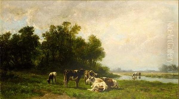 Cows In A Meadow Oil Painting by Hendrik Savry