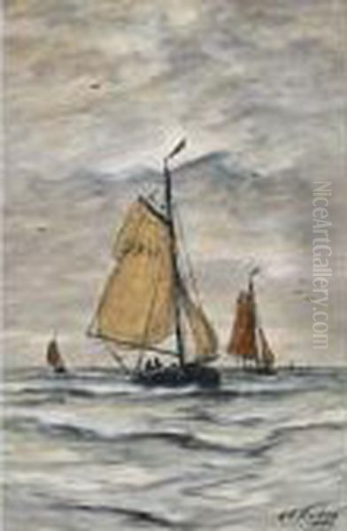 Bomschuiten At Sea Oil Painting by Hendrik Willem Mesdag