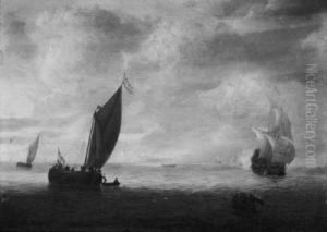 A Galleon Announcing Her Arrival With A Salute, Offshore
