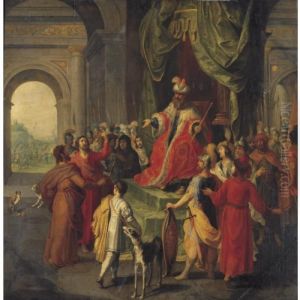 Moses, Pinehas And Eleazar Meeting Officers Of The Army, A Seatedwoman With Two Young Children In The Foreground, Surrounded Byjewellery And Other Precious Materials, A View Of The Army Campbeyond