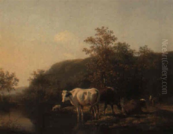 Cows By A Stream