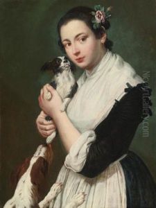 Burgerlijk Interieur Met Pijprokende Kardinaal En Bloemenschikkend Meisje