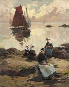 Le Retour De Peche, Soleil Couchant En Bretagne