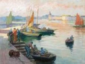 Retour De Peche Oil Painting by Henri Alphonse Barnoin