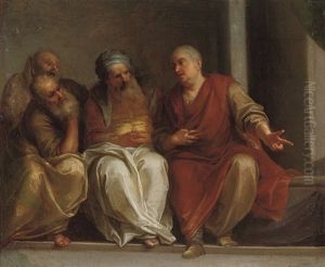 Bring the timeless beauty of Henri Antoine de Favanne's Four Philosophers Conversing into your home with a handmade oil painting reproduction. Carefully recreated on canvas by skilled artists using traditional techniques, this piece captures the delicate brushwork, subtle light, and vibrant color of the original masterpiece. With museum-level quality and rich texture, it brings elegance and artistic depth to any space. Enjoy free shipping and make this masterpiece a part of your personal collection.