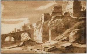 Personnages Vetus A L'antique Devant Un Paysage De Riviere
