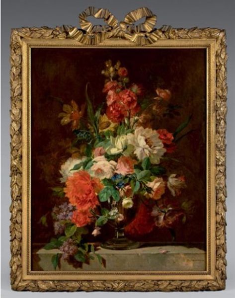 Bouquet De Fleurs Dans Un Vase Sur Un Entablement (2 Works)