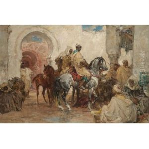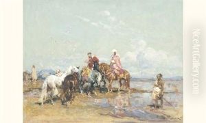 Palfrenier Conduisant Des Chevaux A La Fontaine