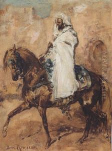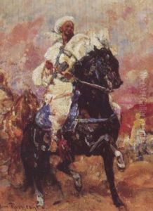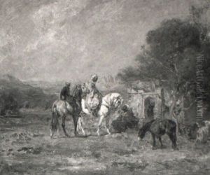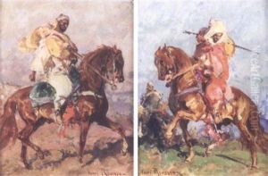 Cavaliers Arabes Abreuvant Leurs Chevaux