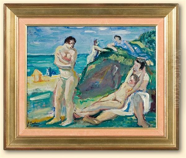 On The Beach Oil Painting by Henri Epstein