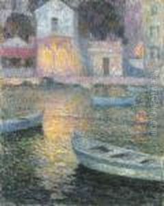 Clair De Lune, Etaples, Signed, Titled, Dated 1891 And Indistinctly Dedicated, Oil On Panel, 27 By 35.7 Cm., 10 5/8 By 14 1/2 In