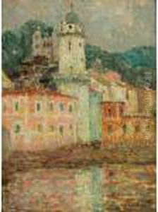 Paysage A La Tour. Huile Sur Panneau, Signee En Bas A Gauche