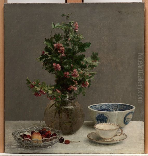 Still Life with Vase of Hawthorn, Bowl of Cherries, Japanese Bowl, and Cup and Saucer