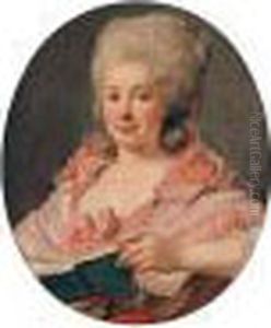 Portrait Of A Lady Traditionally Identified As Madame Ninon De Lenclos (1620-1705), Three-quarter-length, In A Lace-trimmed Blue And Gray Dress, With Roses, Narcissi And Other Flowers In A Roemer On A Ledge, Beside A Classical Fountain
