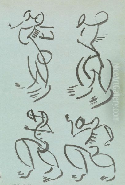 Four Studies of Dancing Figures Oil Painting by Henri Gaudier-Brzeska