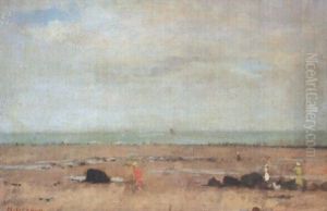 Scene De Plage Par Mer Agitee A Trouville, Le Coup De Vent