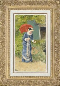Portait De Jeune Femme Au Chapeau Et A L'eventail