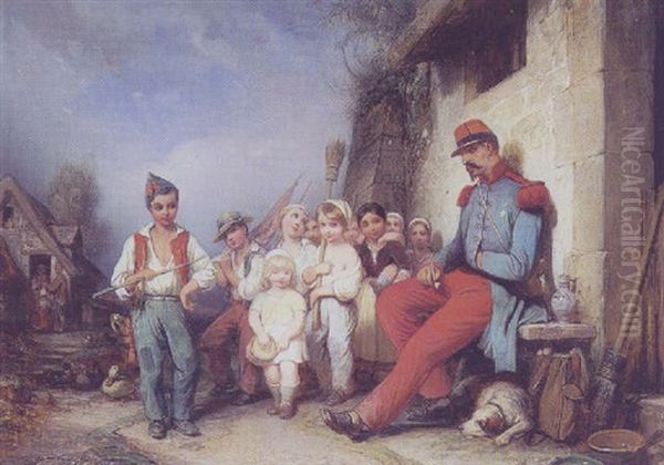 Soldaten Er Hjemvendt, Landsbyens Smaborn Samles Nysgerrigt Omkring Ham