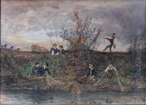 Paysage, Barque Au Bord De L'etang