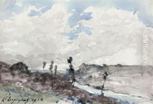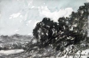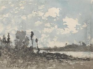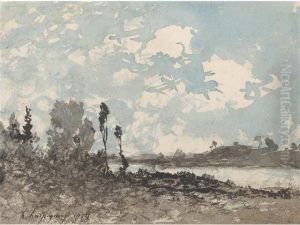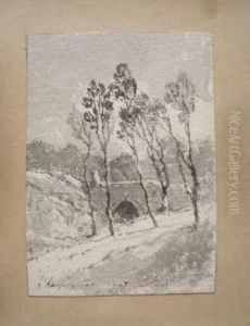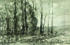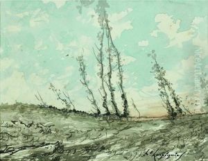 Skizze Von Landschaft Mit Baumen Bei Sturmischemwetter An Der Seine
